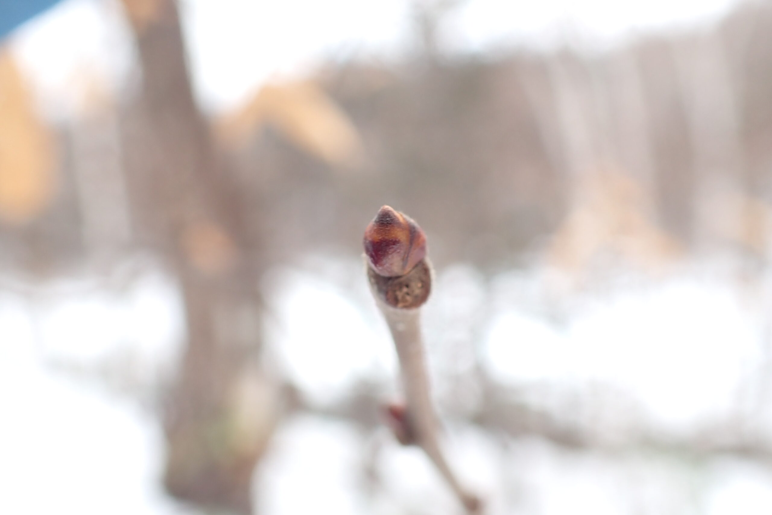 栗の実の色、形をしていてかわいい冬芽ですね。