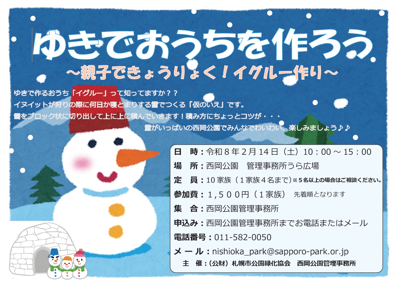 申込み:1月22日より西岡公園管理事務所までお電話またはメールにて受付中