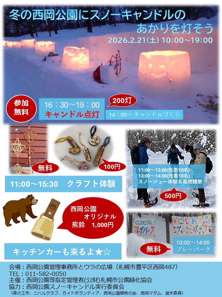 「冬の西岡公園にスノーキャンドルのあかりを灯そう」を開催いたします!