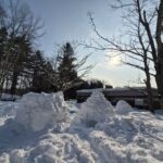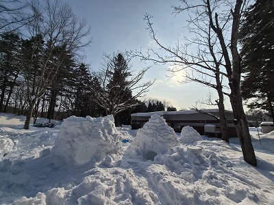 管理事務所の裏手の森の中に雪のおうちが並びました~。