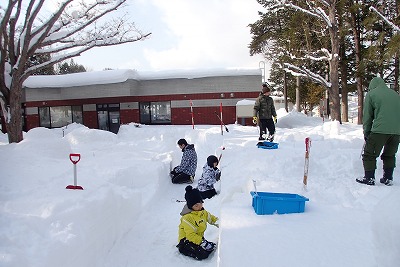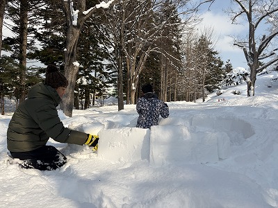 西岡公園では、「ゆきのおうちイグルー」を作るイベントを実施しました。