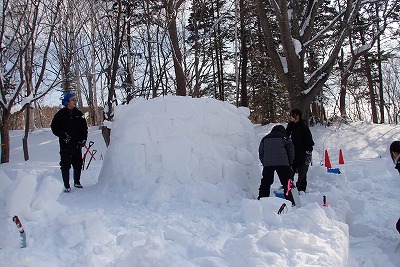 昨年、雪不足のために中止になってしまったイグルーづくりですが、今年は雪は十分な量で雪の質も良好。
