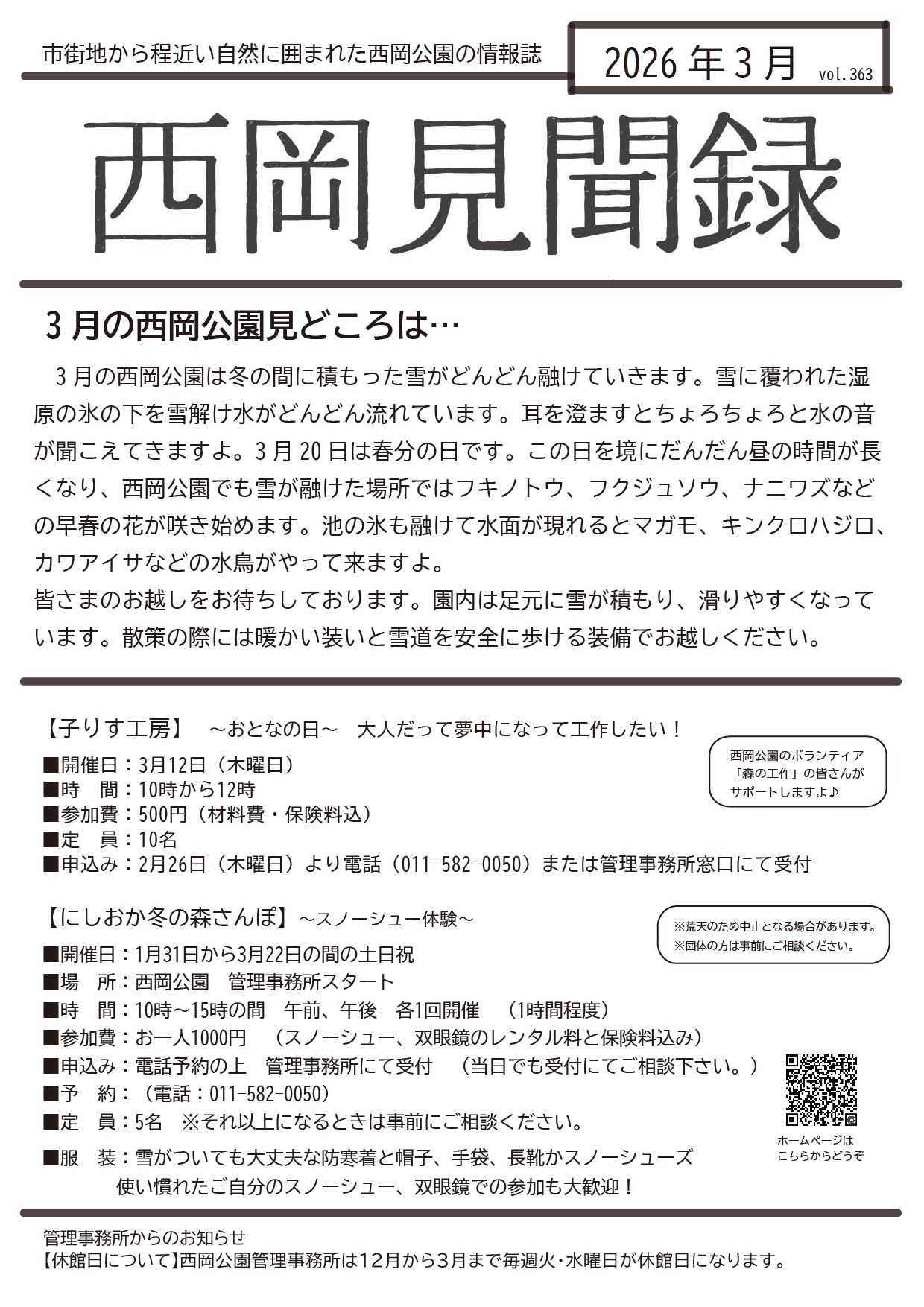 そんな西岡公園では西岡見聞録3月号を発行しました。