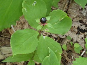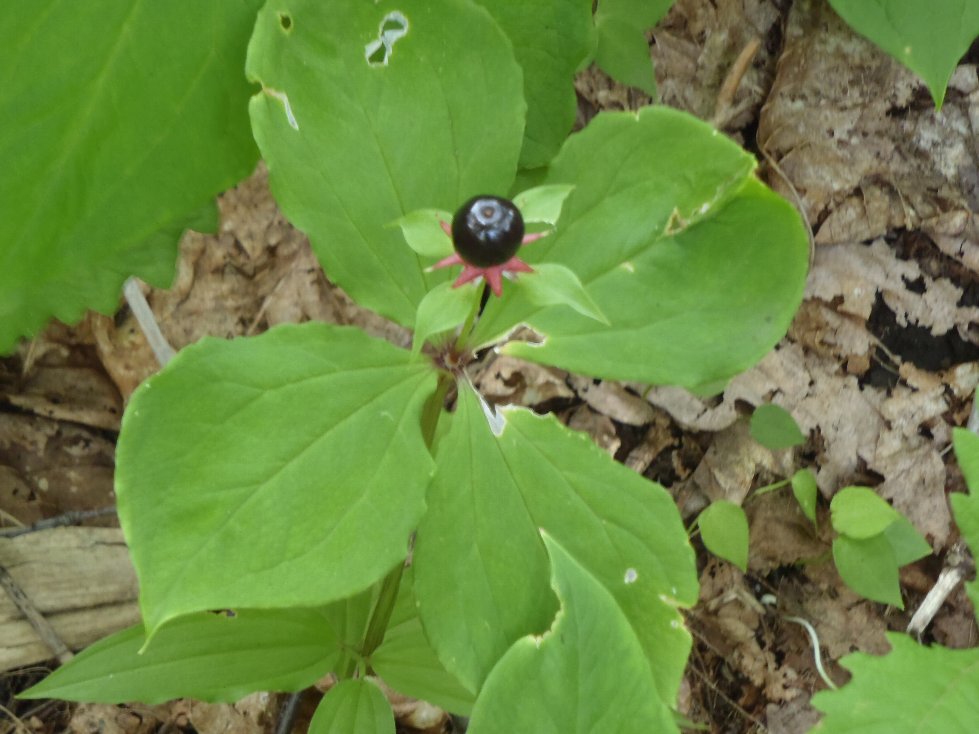 5月ころに咲いていたツクバネソウ。緑色の目立たない花でしたが、今の季節はキレイな紺色をした果実が付いています。園内では沢山の果実や種が見られるので、探して見てはいかがでしょうか?!