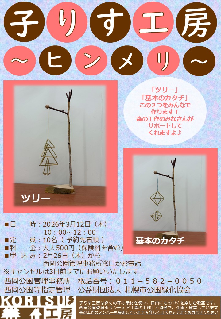 そして今年度、最後の子りす工房が開催されます。