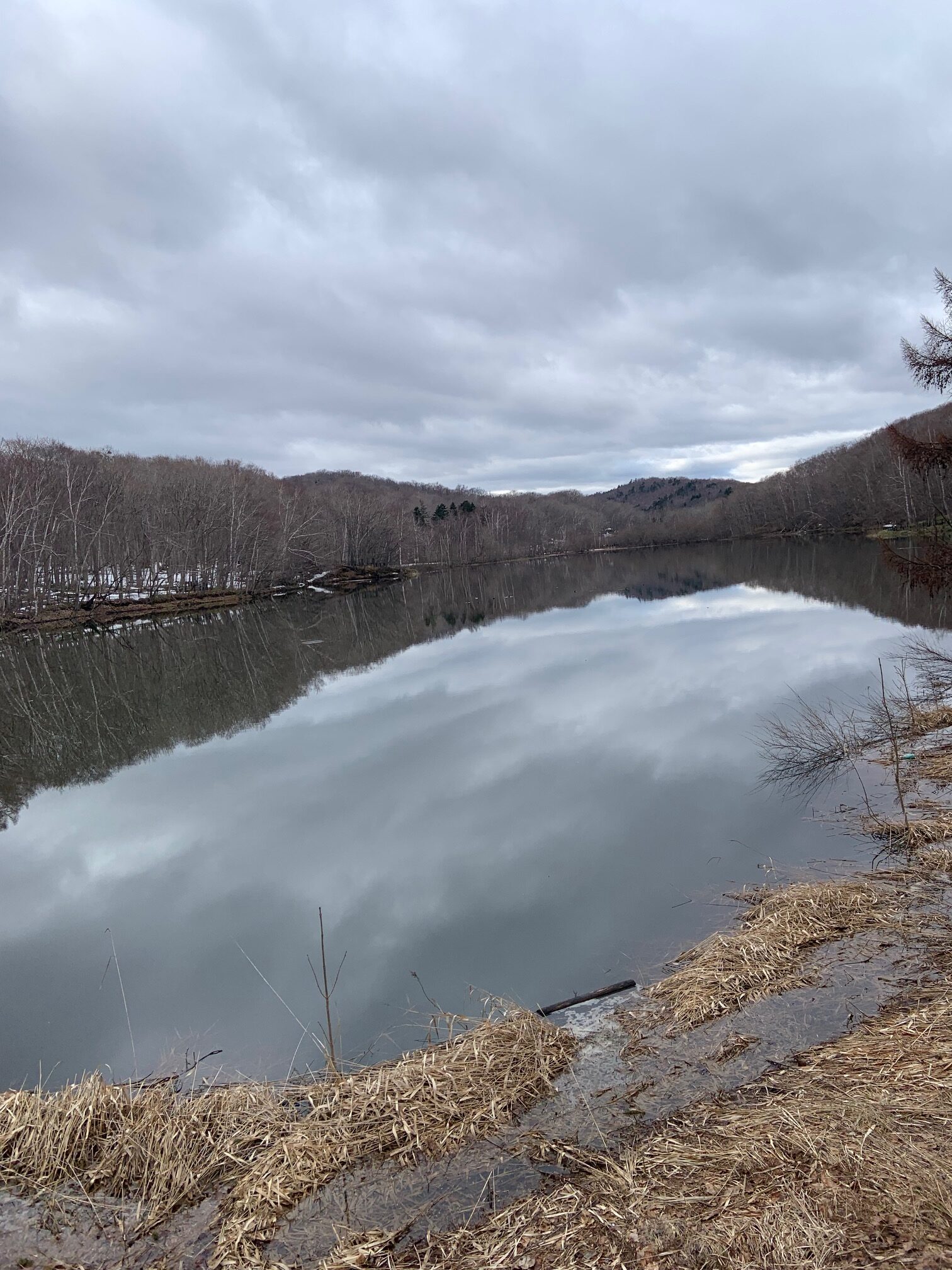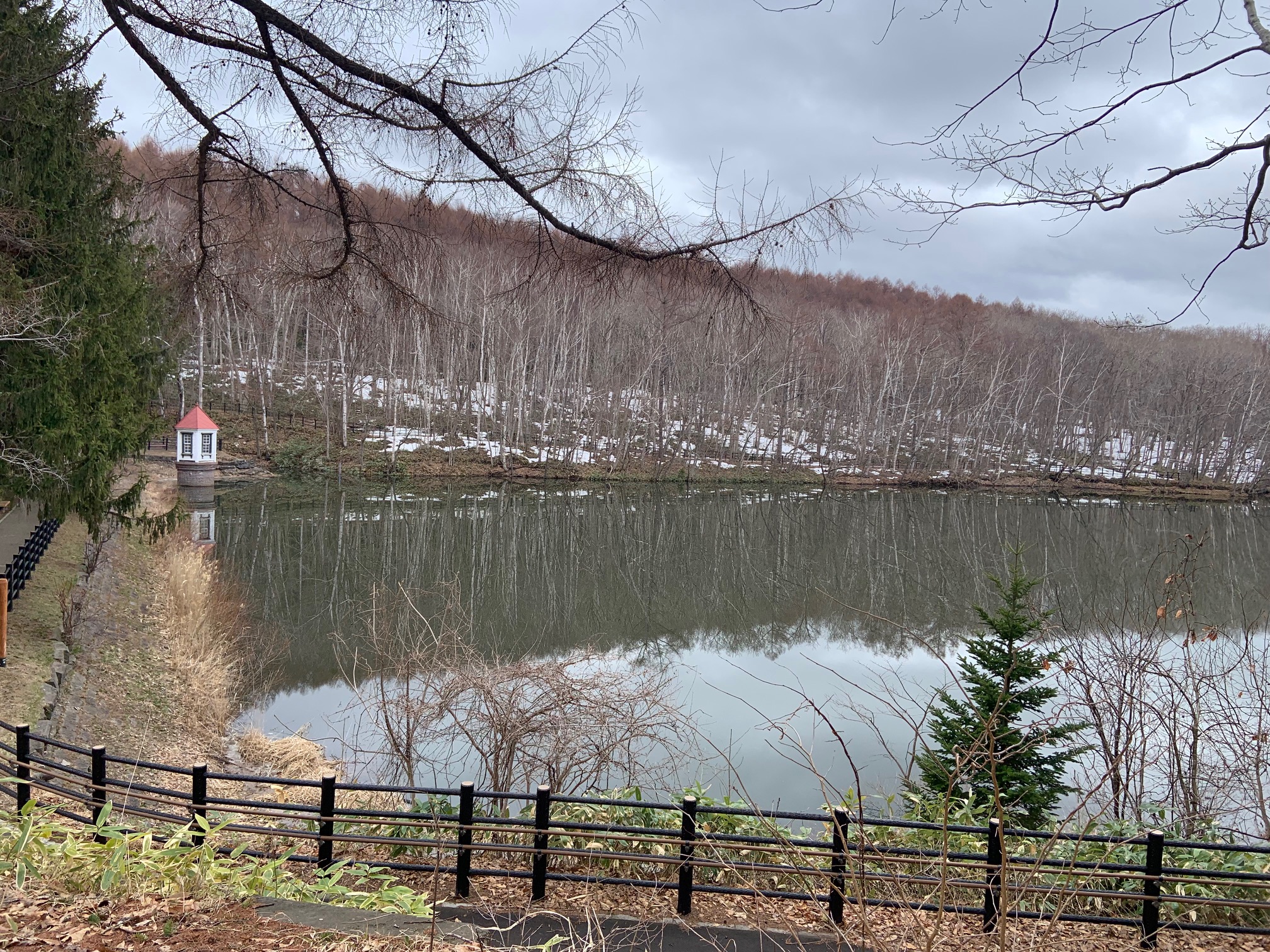昨日までほんの少し残っていた、西岡公園の水源池の池の氷は、今朝にはすっかり融けていました。