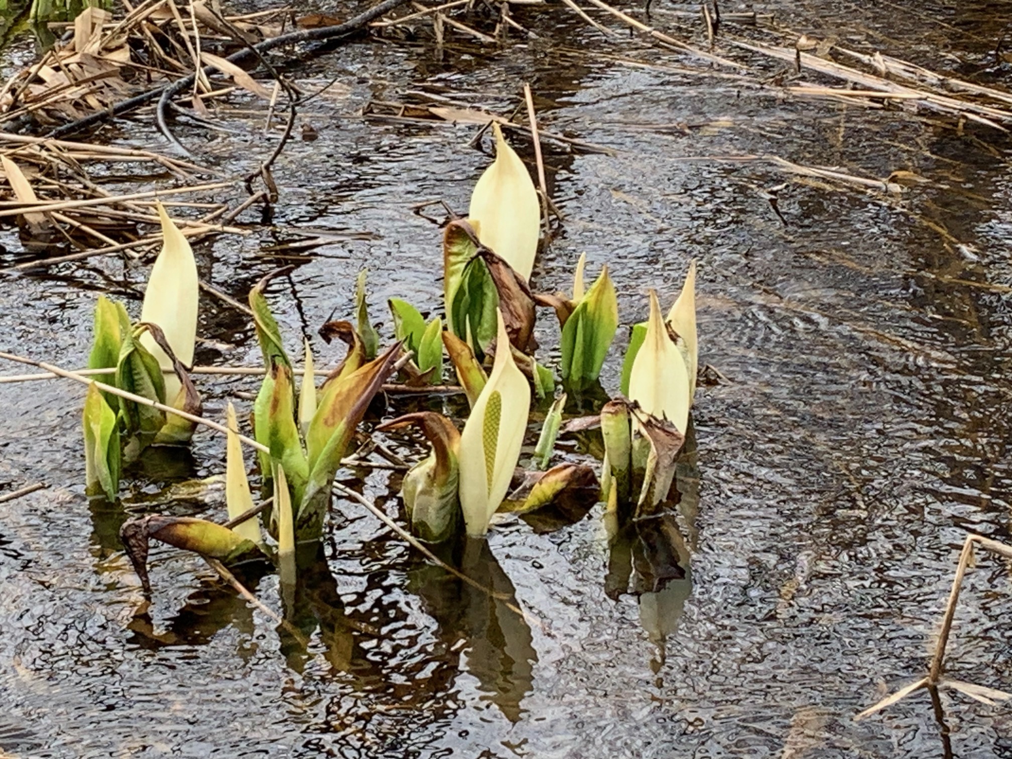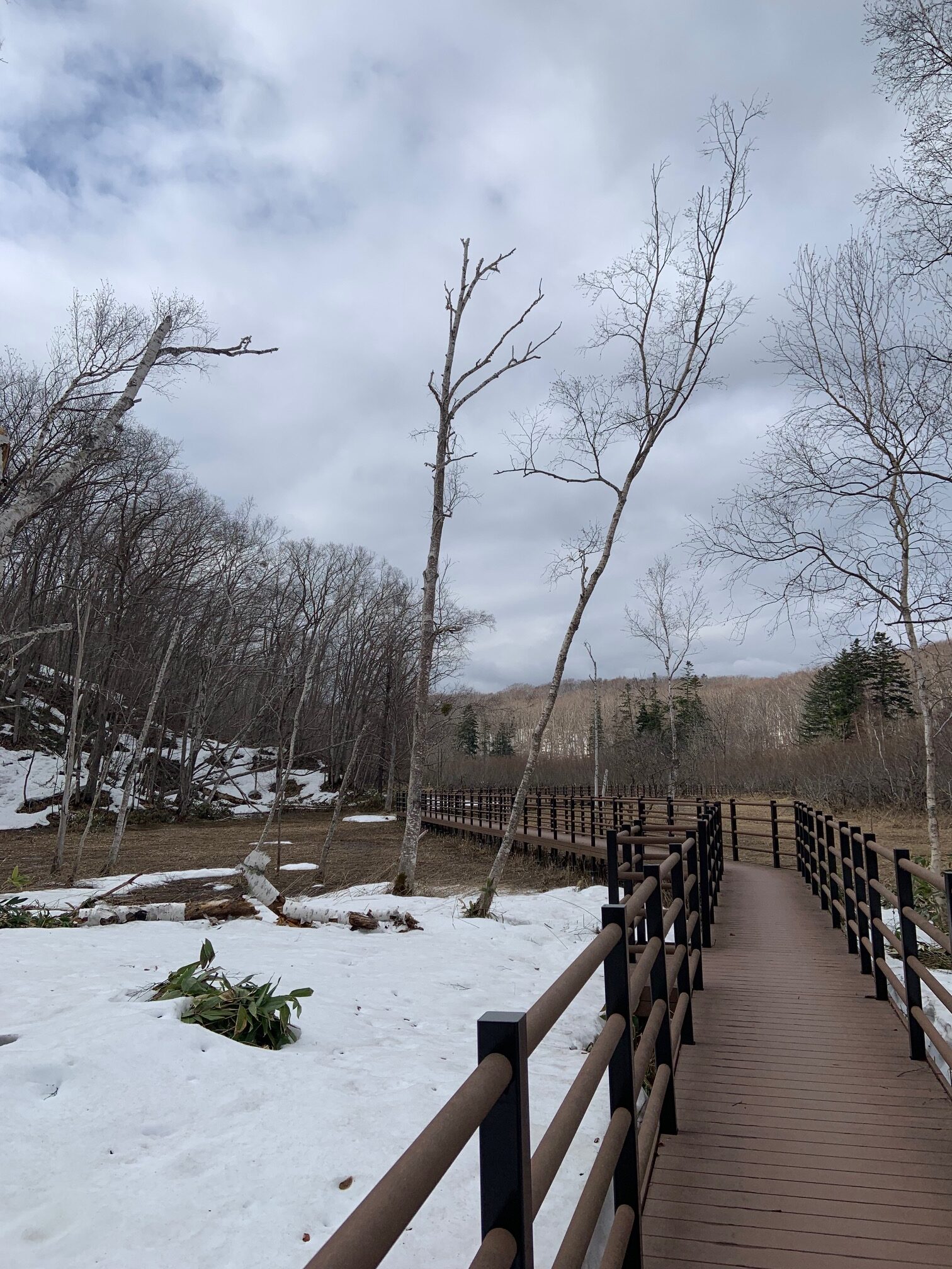 園内はまだ雪が残っていて、ぬかるみ、水たまりのある所もあります。