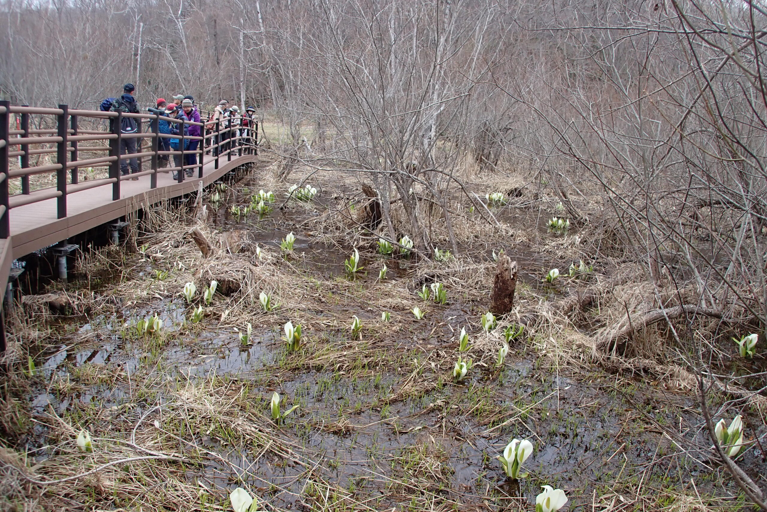 ミズバショウの咲く湿原はちょうど見頃です。