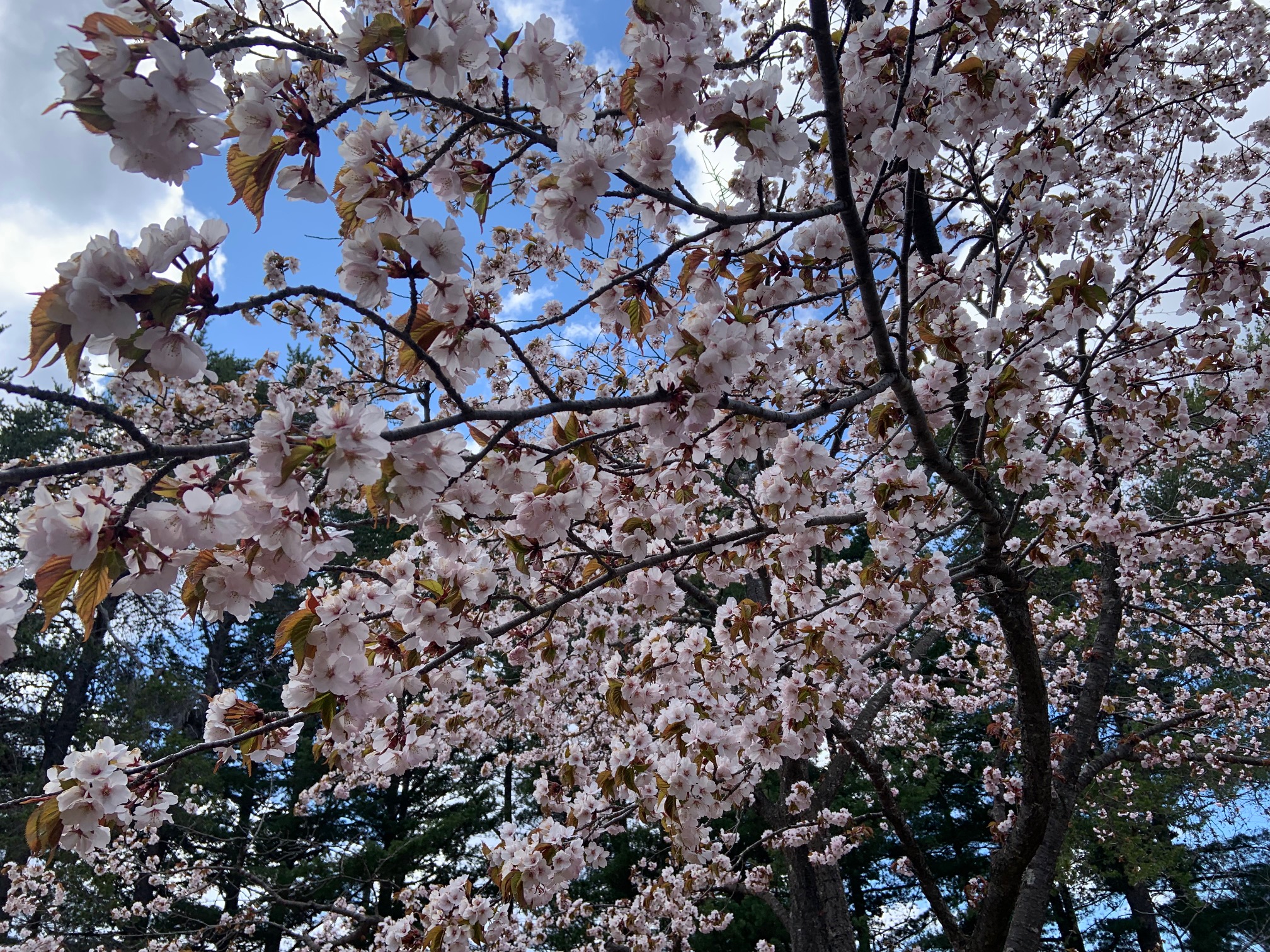 市内ではすでに満開なエゾヤマザクラですが、西岡公園ではようやく見頃を迎えました。