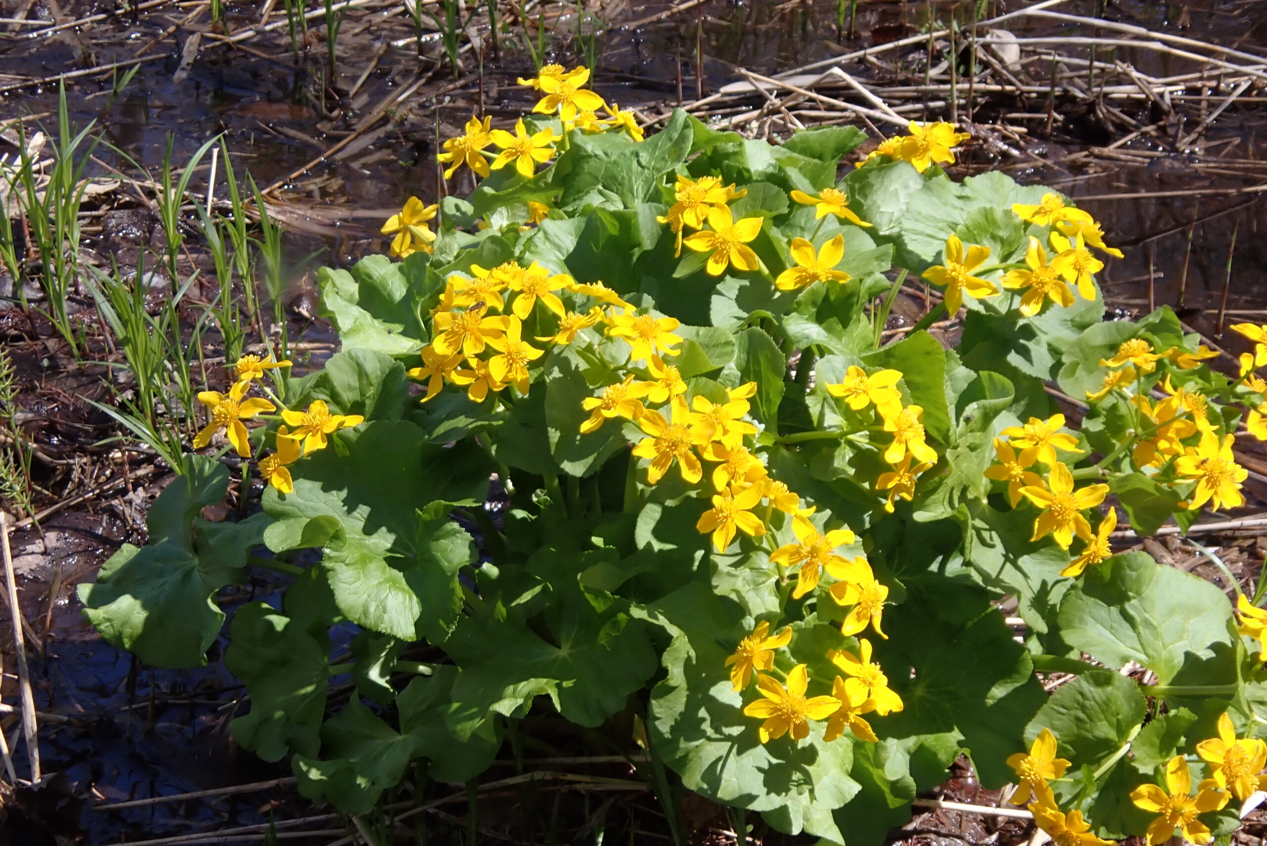 エゾノリュウキンカの黄色い花が鮮やかです。