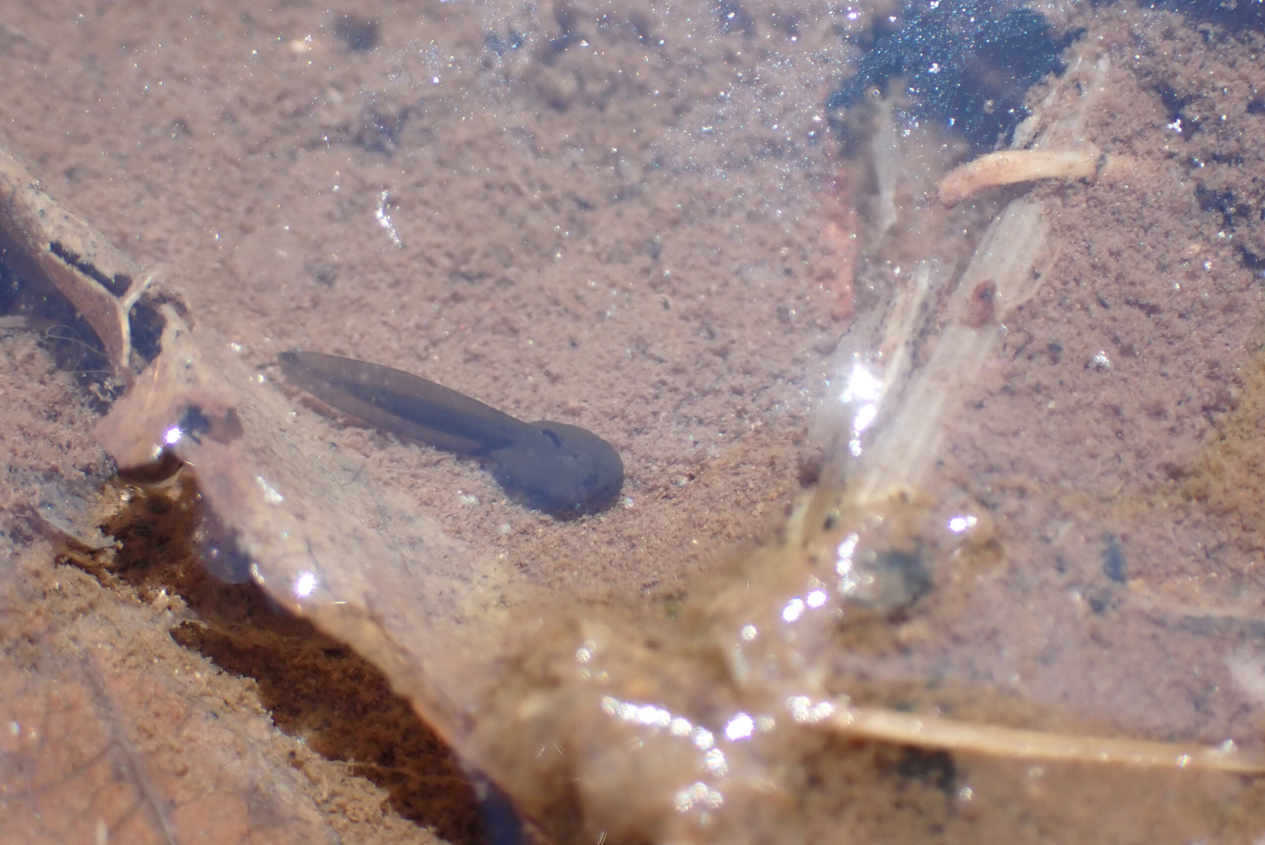 エゾアカガエルのオタマジャクシが近くを泳いでいました。