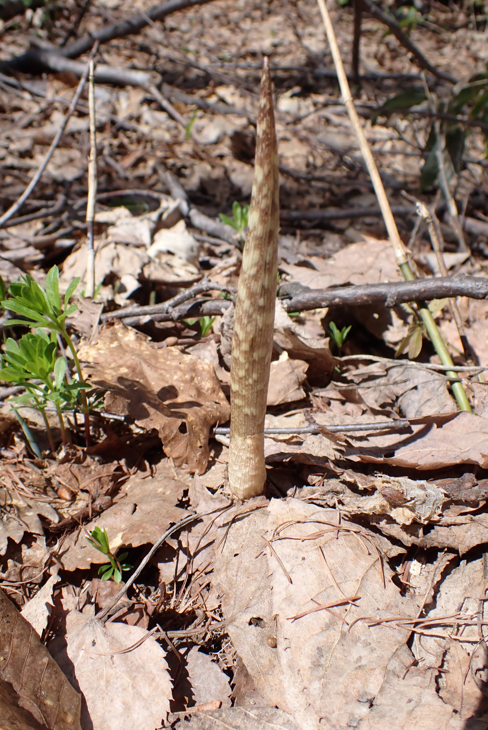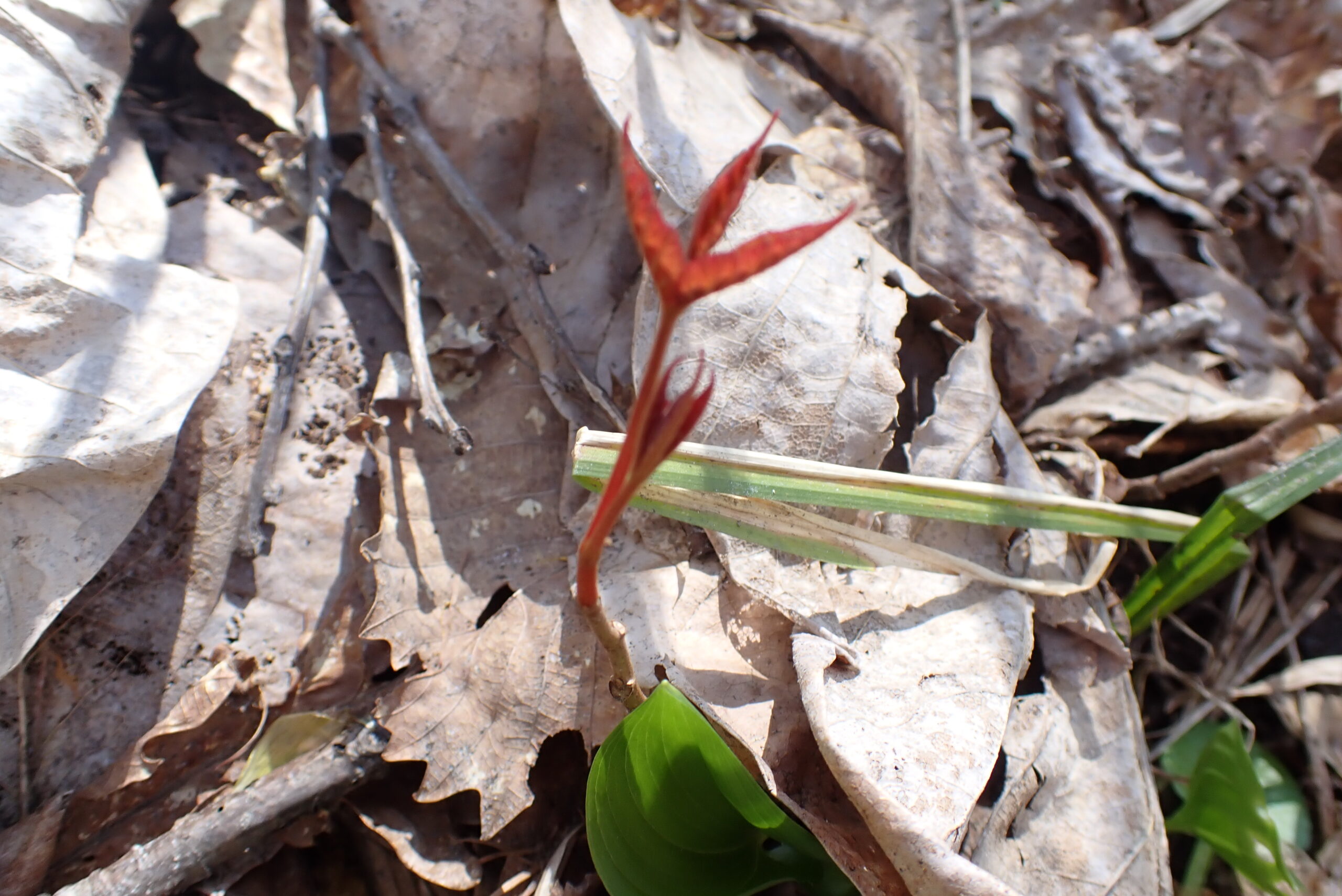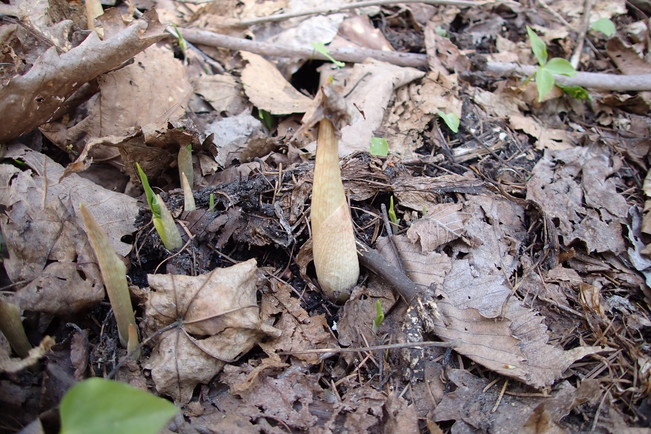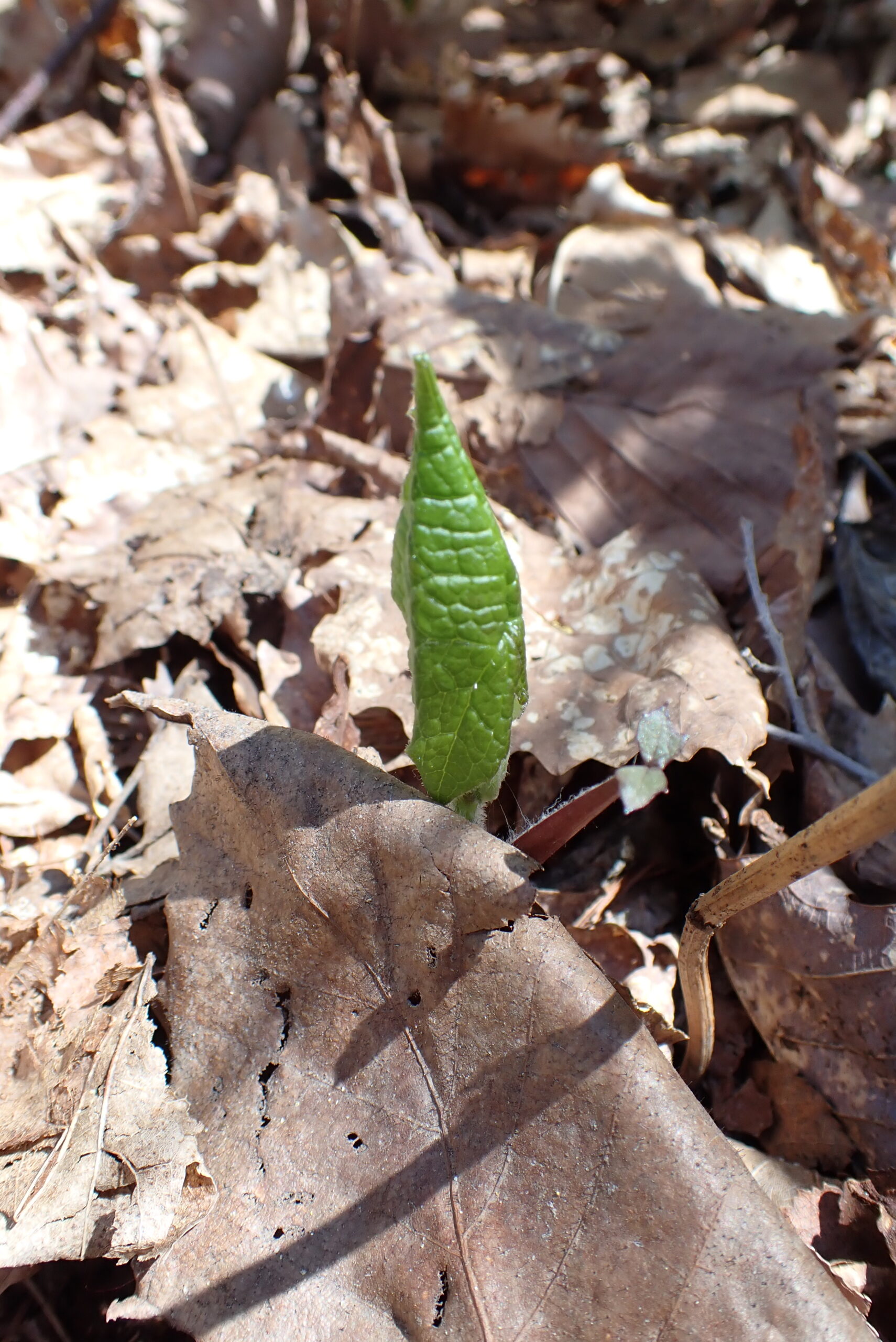 コウライテンナンショウが落ち葉を突き破って、つんつん出てきましたよ。