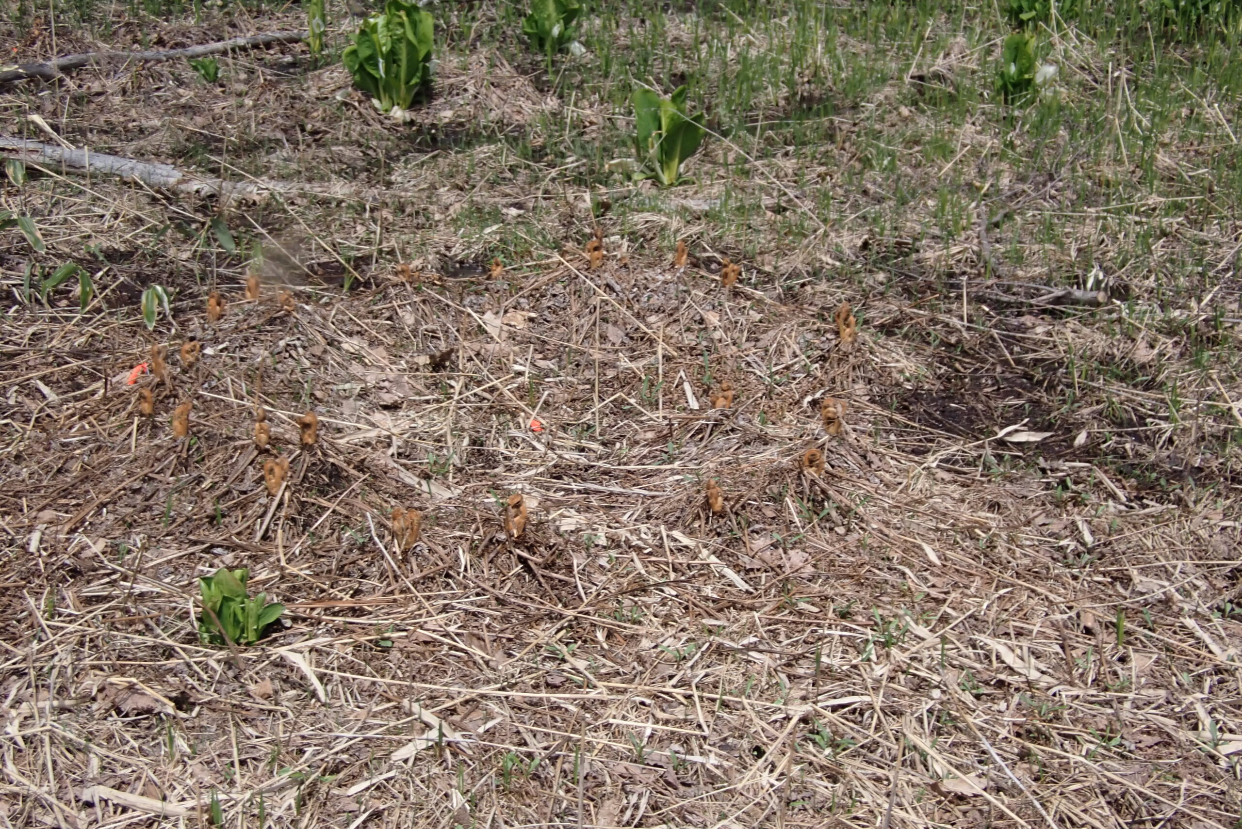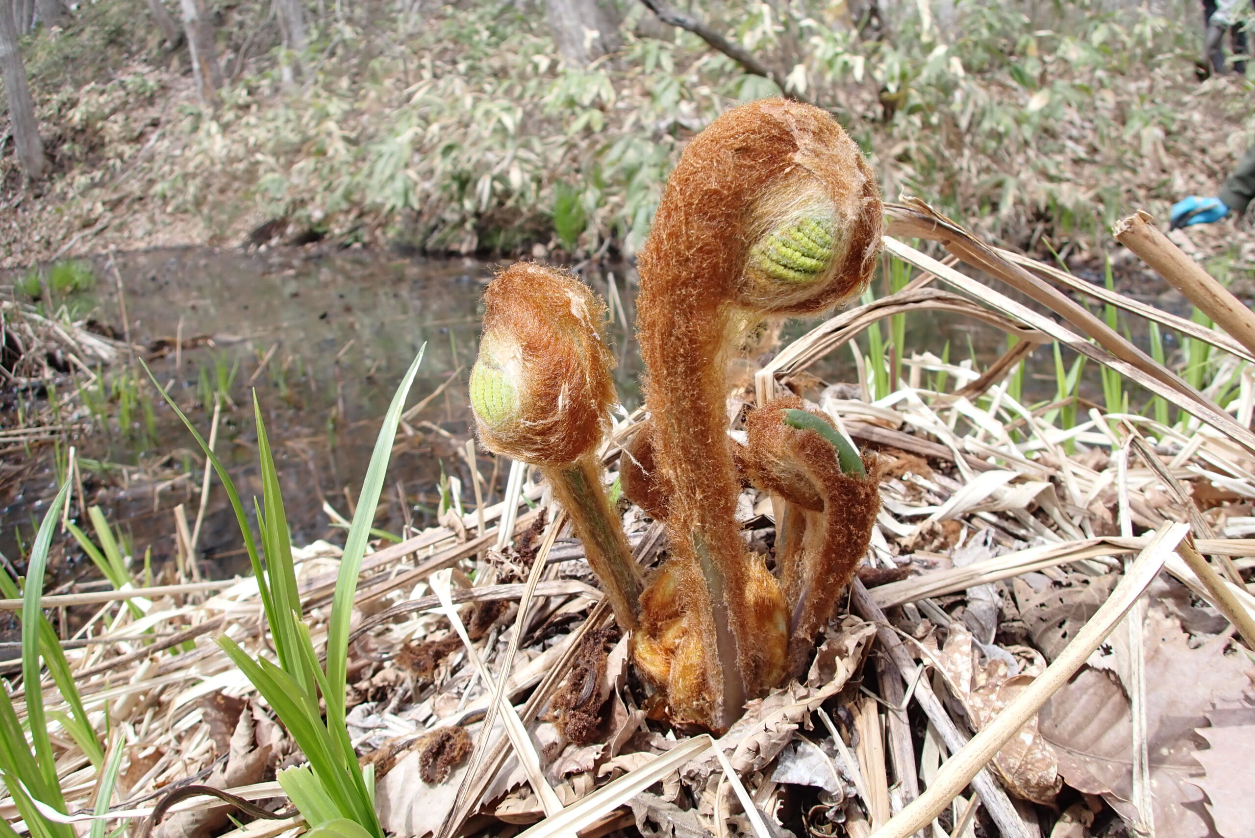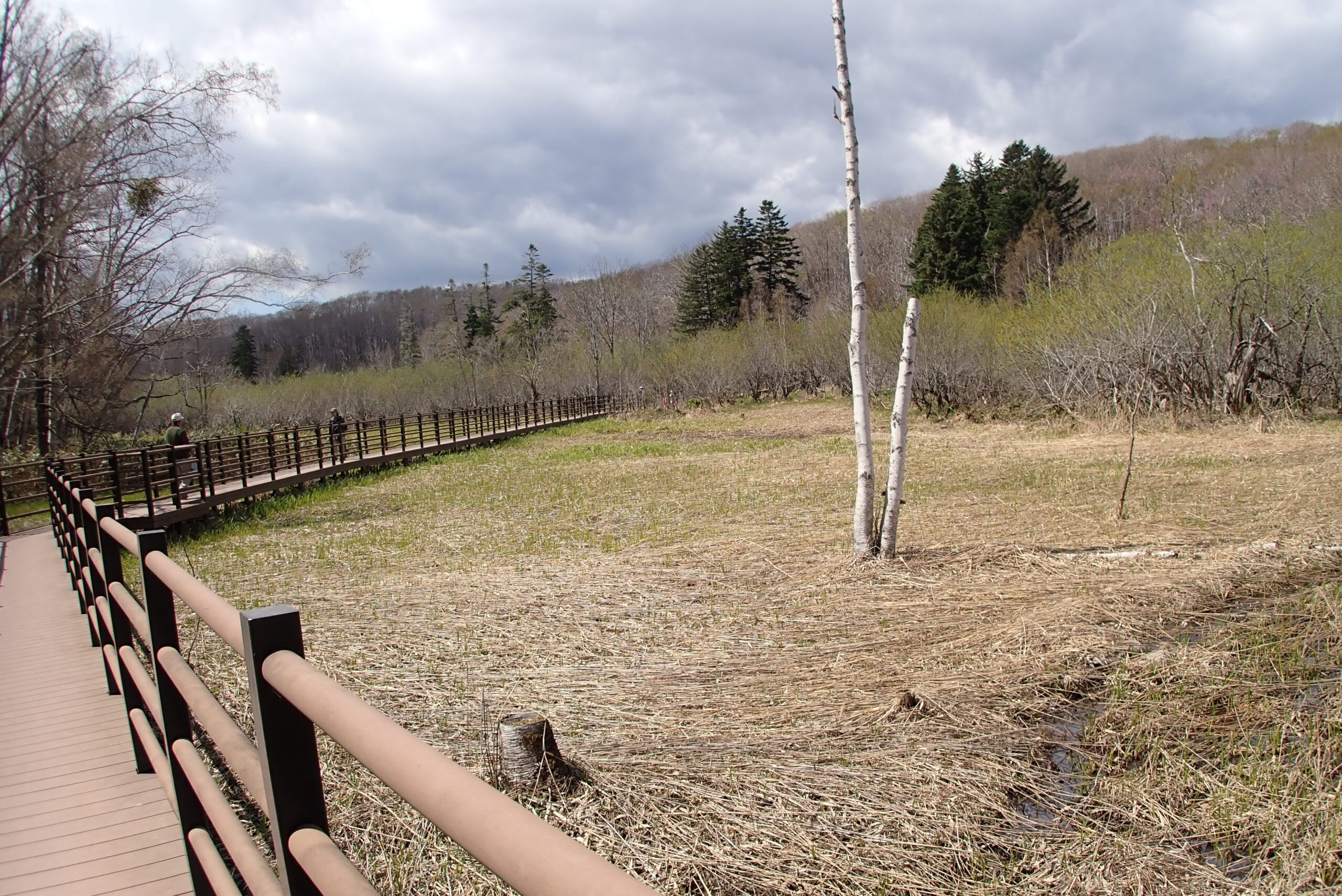湿原もかすかに緑色がかってきました。ヨシやスゲたちの芽出しも、たくさん