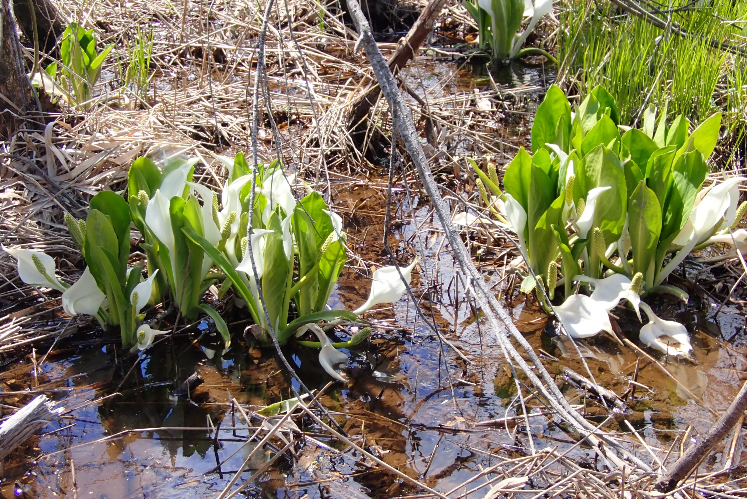 湿原の奥のほうではまだきれいなミズバショウも残っていました。
