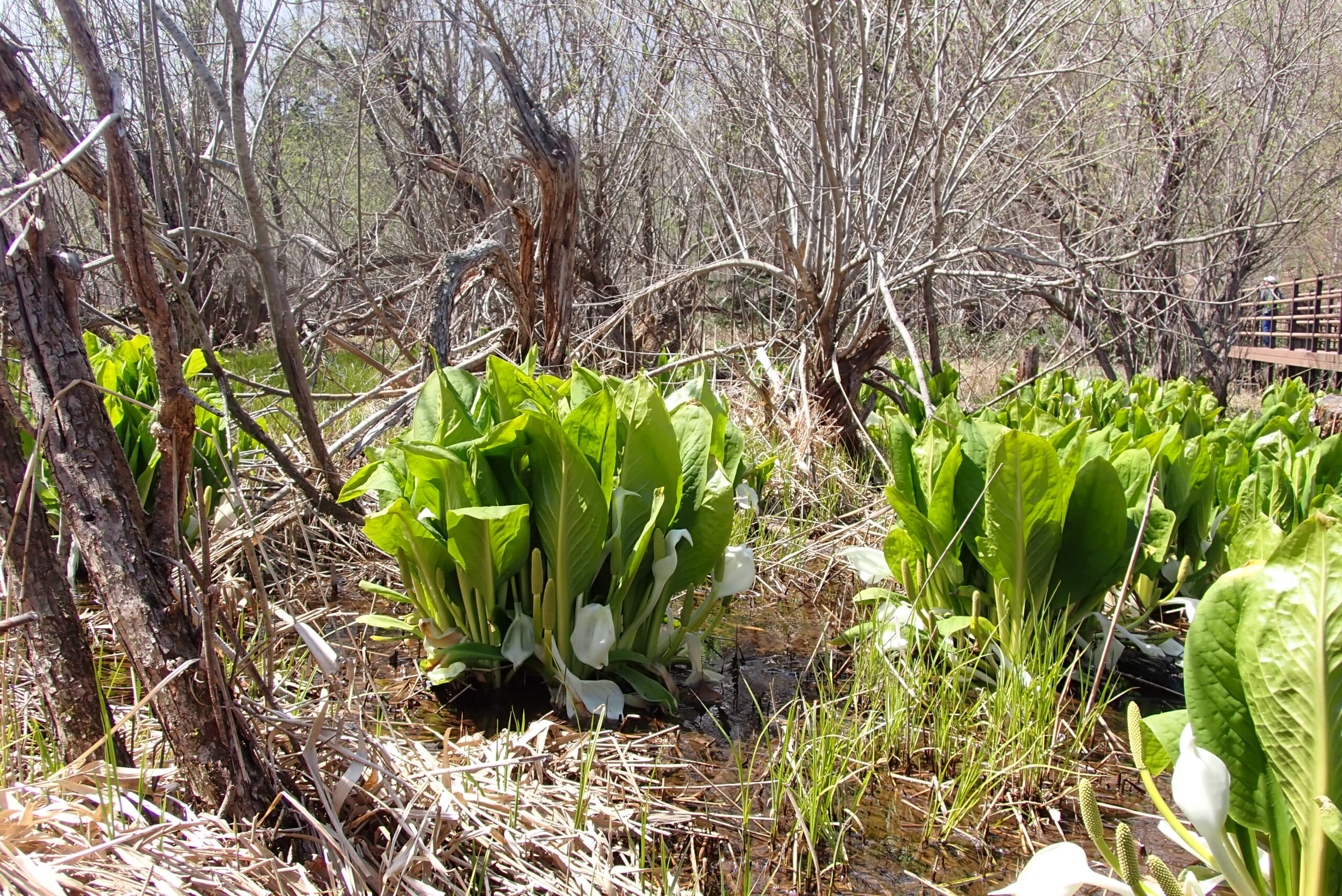 ミズバショウは葉が茂りだして見頃が過ぎたようです。