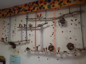 樹のパネルの穴をくぐるとキッズコーナーがあり、樹からは、
