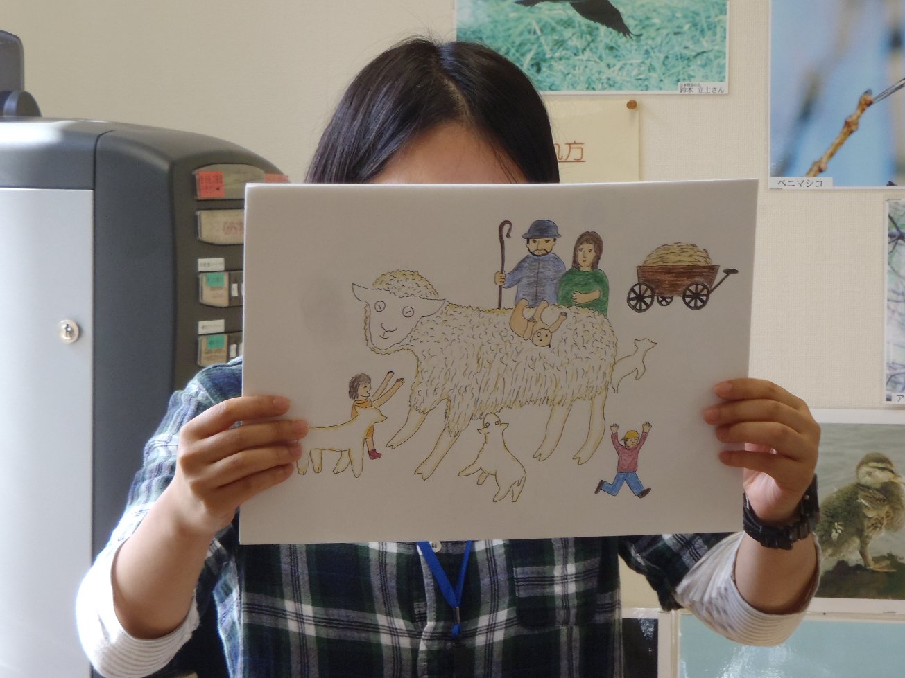 最後は恒例のお話タイム。今回は毛糸にちなんで、ヒツジのお話でした。