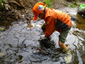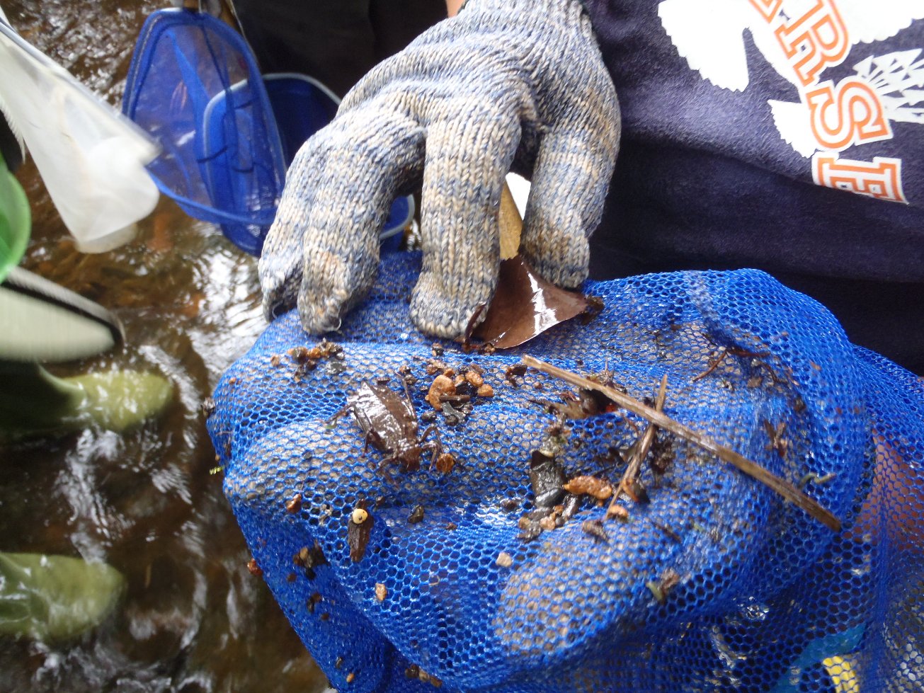 酒井さんから、水生昆虫のとり方を教えてもらい、いよいよ調査スタート!