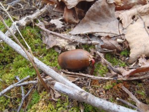 今年は西岡公園のドングリは豊作でした。あちこちで落ちているドングリの中に、根が出ているドングリがありました。落ち葉の布団で年をこした来年には新しい芽が出ていると思います。がんばって成長して欲しいです。