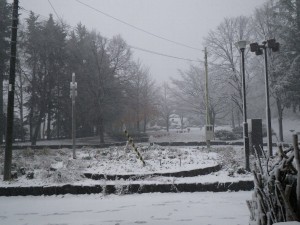 15時40分ではご覧の通り積もって白銀の世界になっていました。雨に混じっていた雪が完全に雪だけになって降っていたようです。