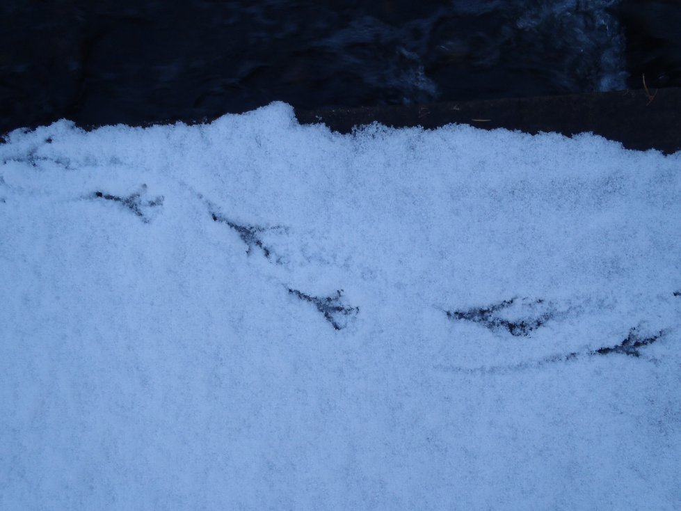八つ橋で鳥の足跡を発見。何の鳥かなと思っていた所、通りかかった利用者の方から八つ橋の上でカワガラスがいたと教えて頂き、たぶんこの足跡はそこで見たカワガラスのものではないかとおっしゃってました。他にも園内には足跡があちこちに。今年は何種類の足跡が見られるか楽しみです。