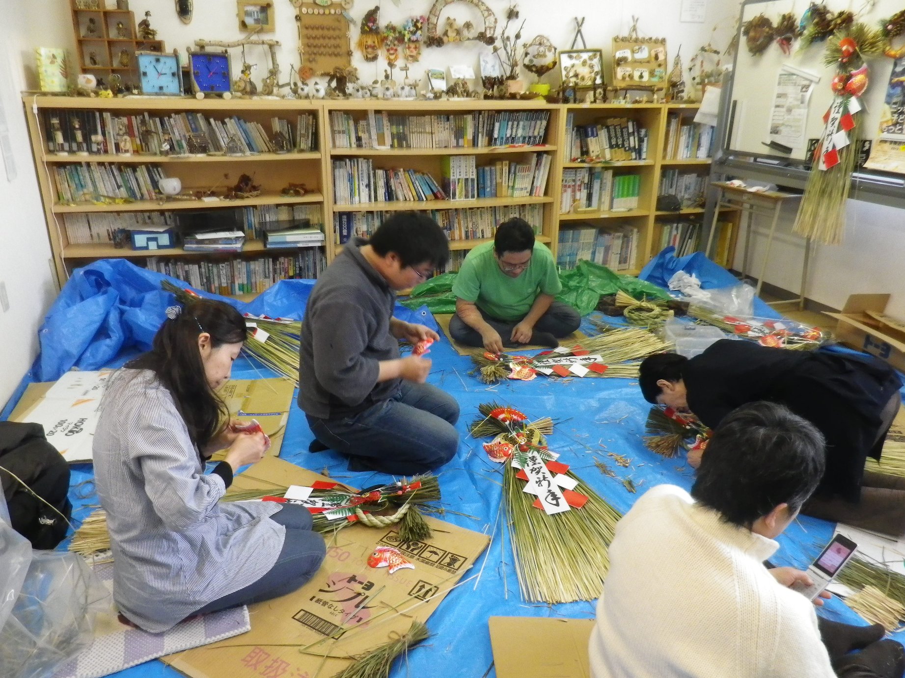 今日は、子りす工房~おとなの日で、毎年恒例のしめ縄作りを行いました。