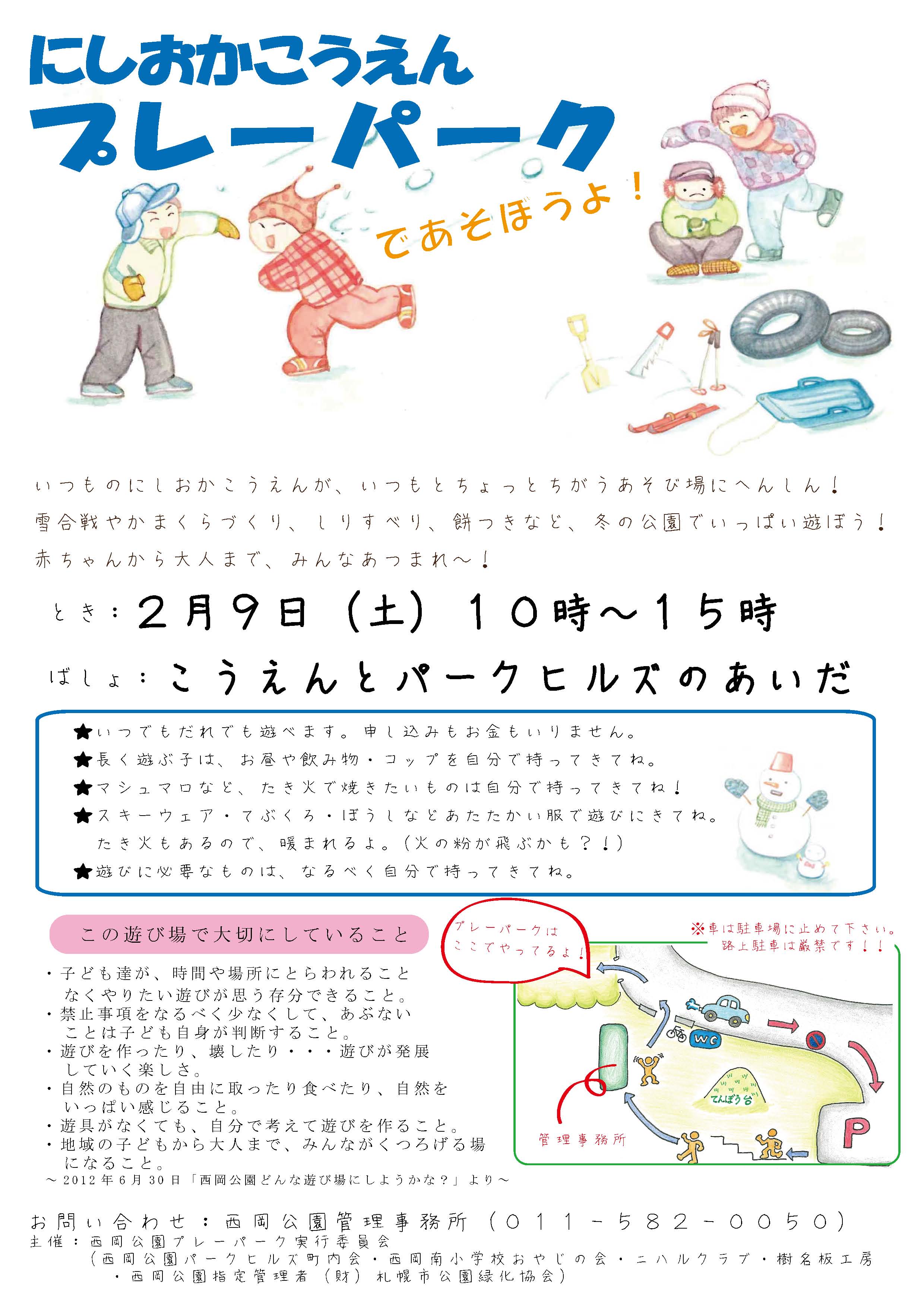今年も冬のプレーパークを開催します! かまくらづくりやロープ遊び、雪合戦や尻滑りなど、みんなで冬の遊びを楽しみませんか? 西岡南小学校おやじの会のみなさんによる楽しい企画や、パークヒルズ町内会による 餅つきもありますよ! 時間内ならいつ来てもいつ帰ってもOK!気軽に遊びに来てくださいね。 皆様のご参加をお待ちしています!