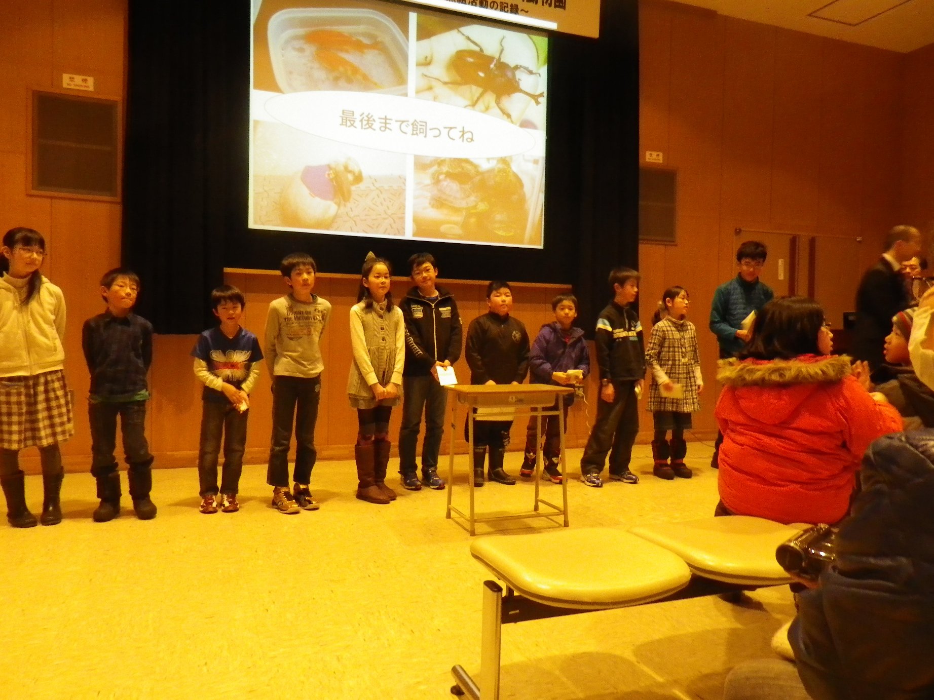 また、6年生の活動のまとめの中では、調査中に見つかった、グッピーや金魚などの捨てられた生き物の話もありました。人が飼っていた生き物を自然の中に放すと、もともといた生き物にどのような影響があるのかを伝えることが、魚組の大きな活動の柱になりつつあります。問題意識を持ち、活動に取り組んできた6年生の発表は、本当に頼もしく立派でした。
