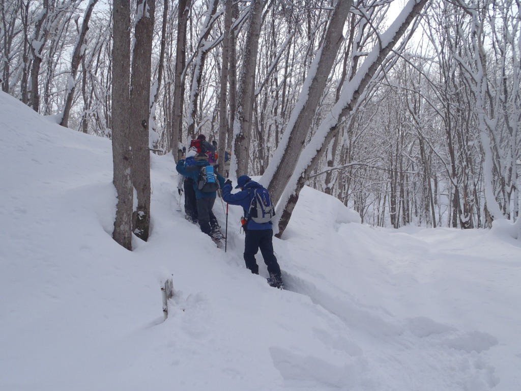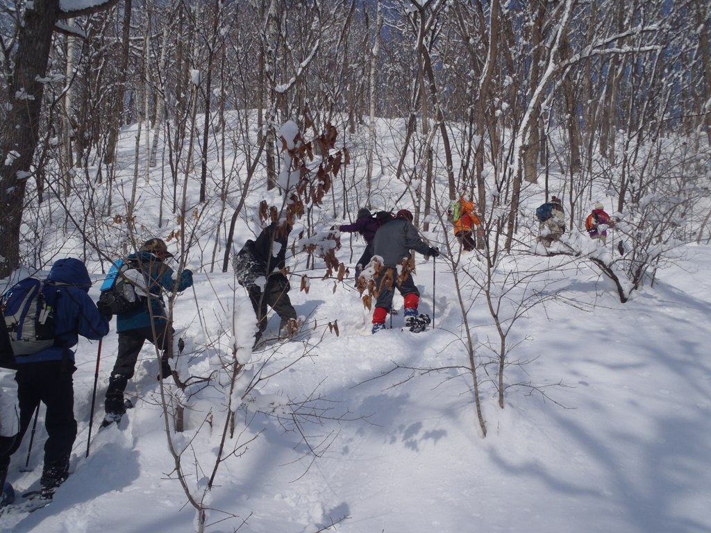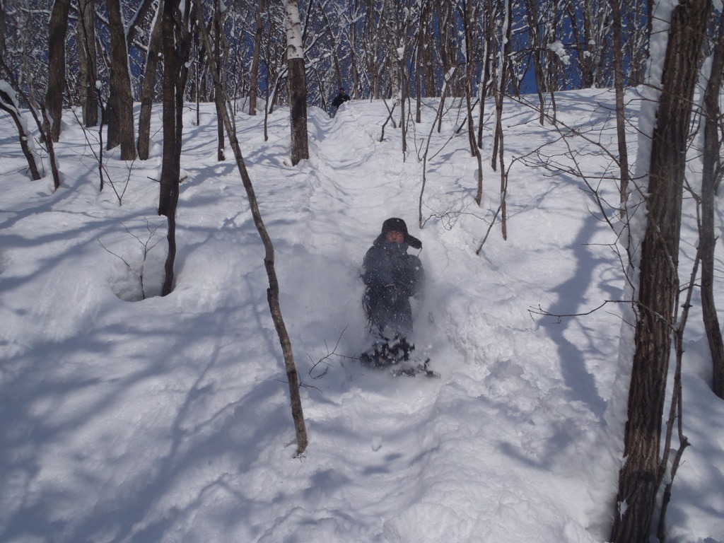 ゴールの前にちょうど良い斜面があったので、お尻滑りでショートカット。意外とスピードがでましたが、滑り終わるとみなさんとっても良い顔で笑っていました。