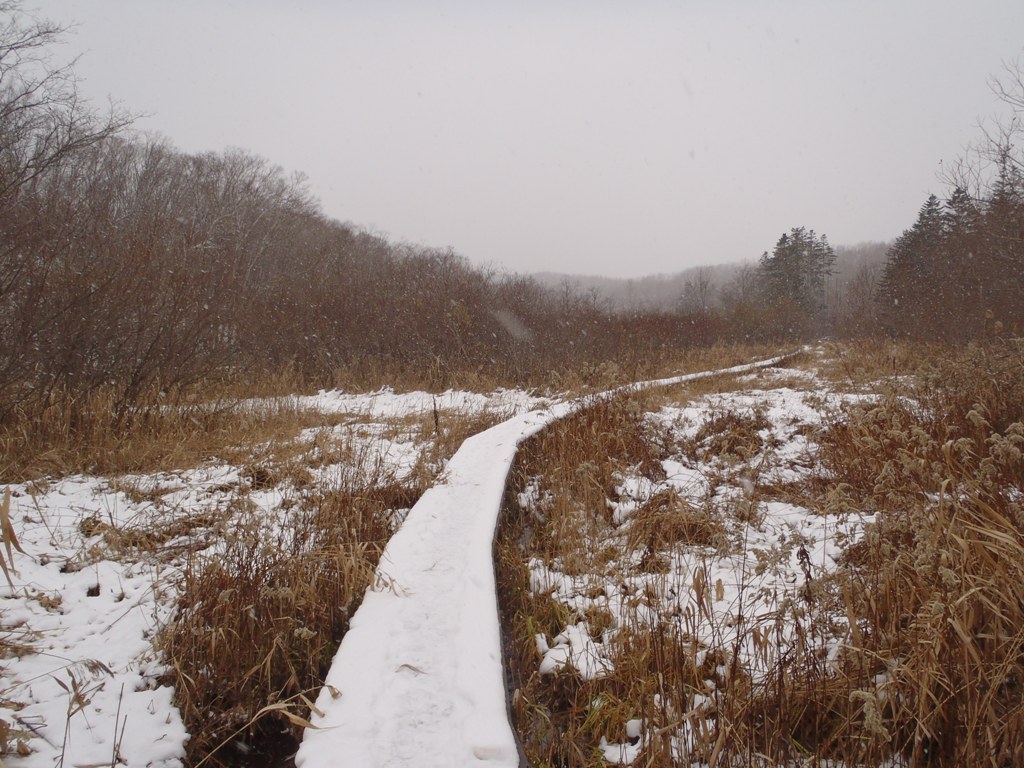 木道が雪で覆われるまで積もるのは初めて見ました。