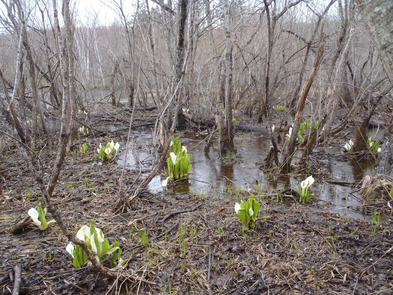 湿原のミズバショウは、綺麗に咲いていましたよ。
