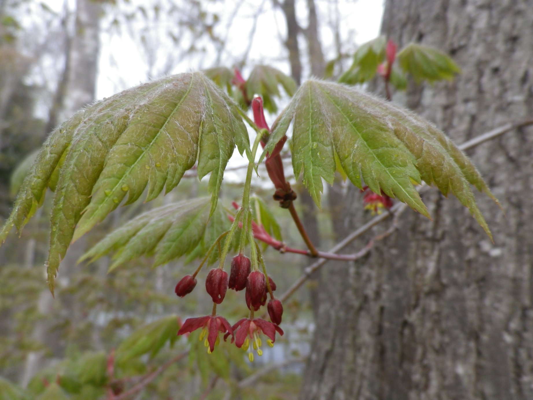 こちらはハウチワカエデの花です。 かわいい花ですが、葉っぱの出方が「うらめしや~」と言っている おばけのように見えたり、鳥が運んでいる花束のように見えたり・・・・・ なんとなくユーモラスな花です。