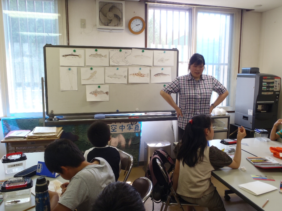 かじさんの学生時代のスケッチや、実際に見本を描きながらバランス良く魚を描く方法、特徴を正確に描くことなど、たくさんのことを教えてもらうことができました。