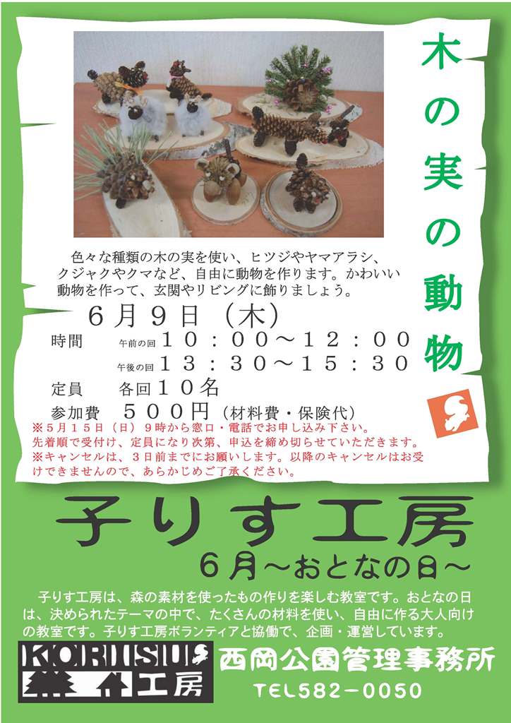 子りす工房~おとなの日6月は「木の実の動物」を作ります。