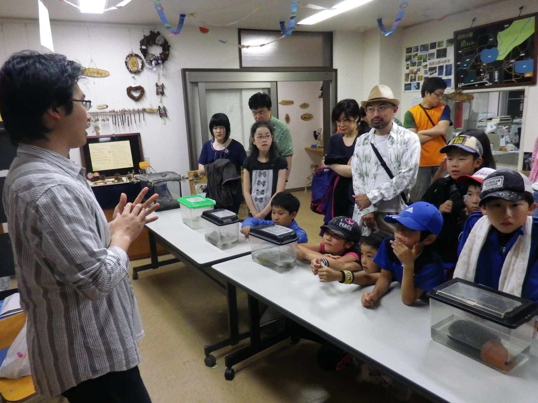 今年の企画は、にしおか魚組(子ども達の水辺の調査隊)の指導者による、寄生虫とカエルのミニ講座です。