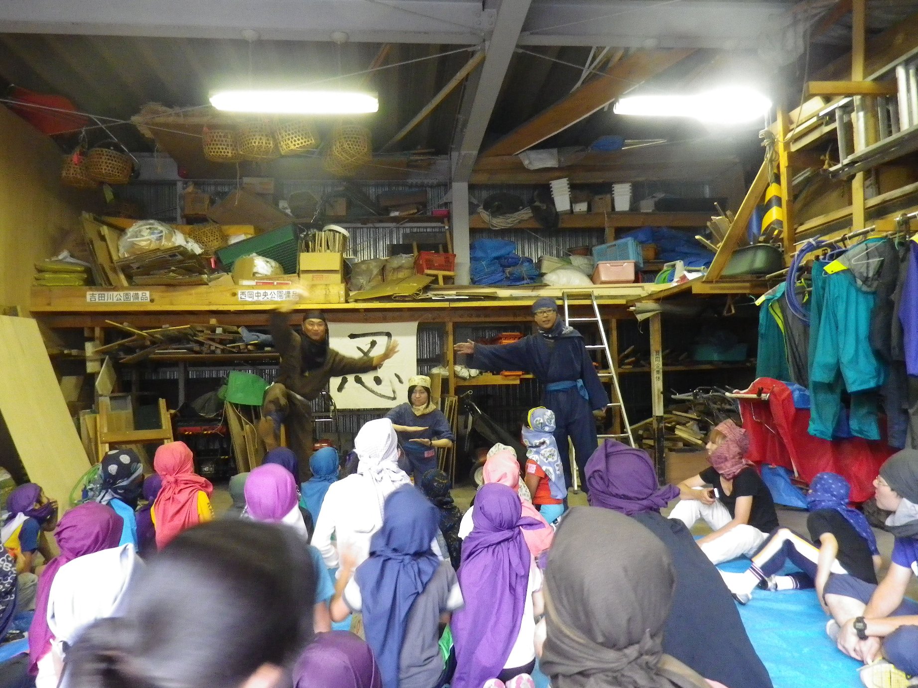 そんな天気の中、夏休みイベント最多の40人以上が集まり、忍者修行のはじまりです!