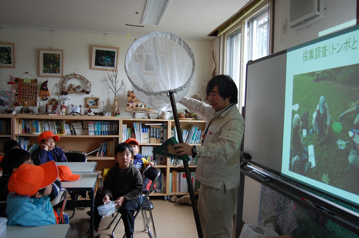 次に、トンボのおじさんやお兄さん達が、活動の説明や調査のやり方を教えて