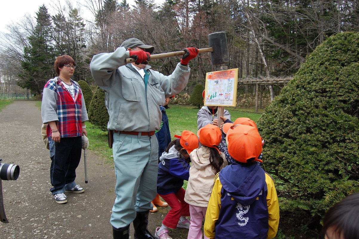 最後は、公園を1周しながら、看板を取り付けました。大きなハンマーで、看板を