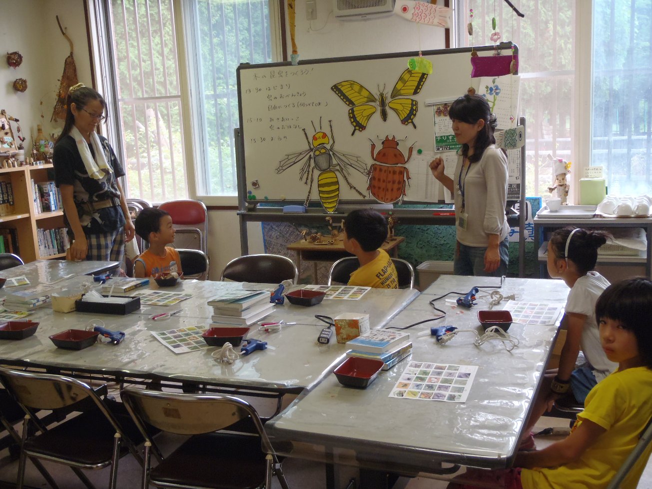 昆虫は、みんな自由に作りました。 大きな虫を作った子、大きな木を立ててたくさんの虫を止まらせた子、 それぞれにステキな昆虫が完成しました。