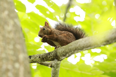 エゾリスがオニグルミの実を食べていました。