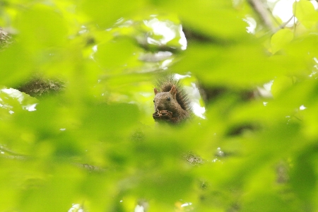 最近、この場所で、オニグルミの実を食べるエゾリスをよく見かけます。