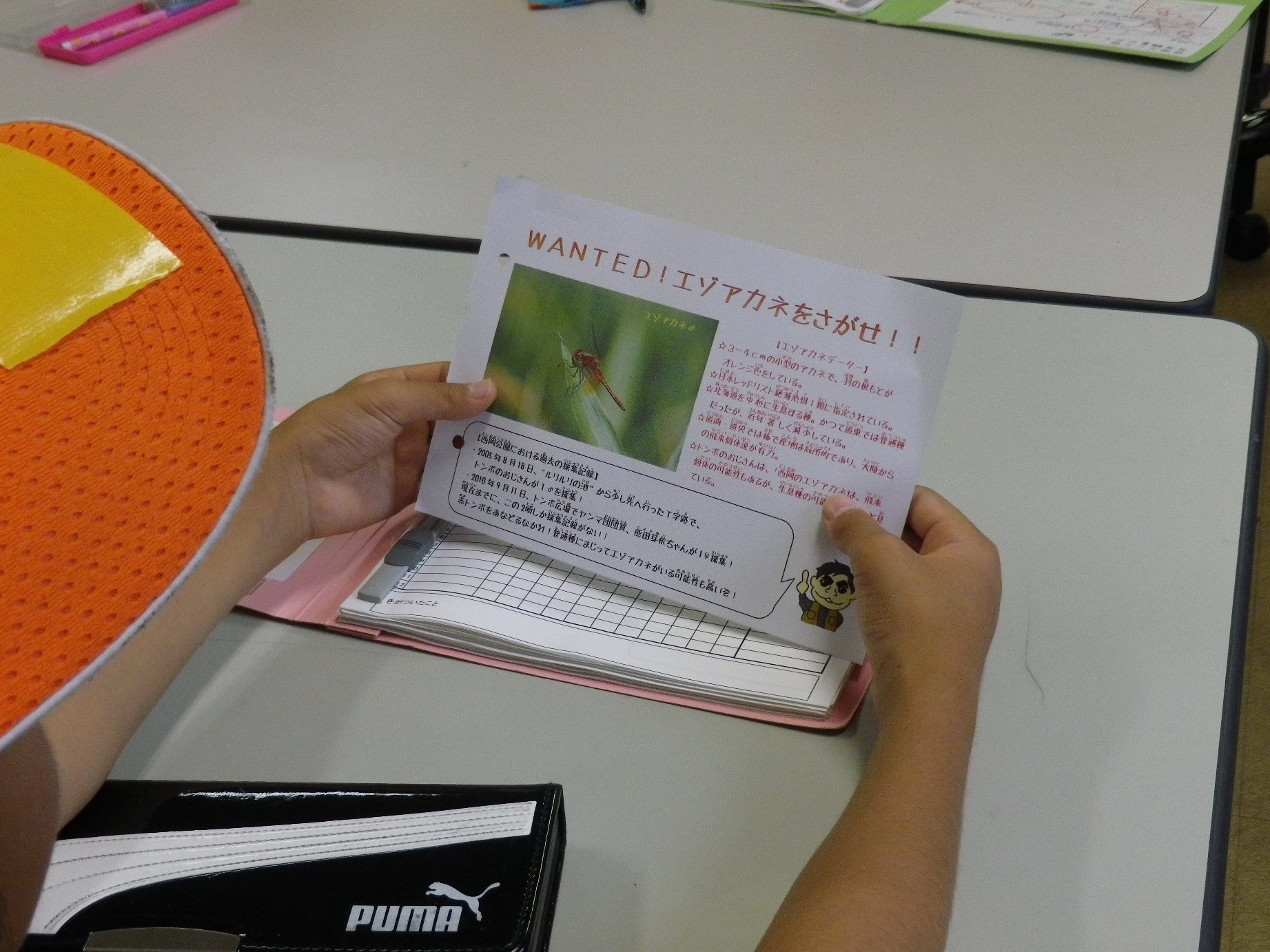 赤トンボと呼ばれるアカネ属の仲間は見分けが難しいので、捕まえる度に観察して、時には図鑑で検索して同定していきます。こういった経験をたくさん積んで、みんなだんだんと違いが見分けられるようになってきましたね。とっても頼もしいです!