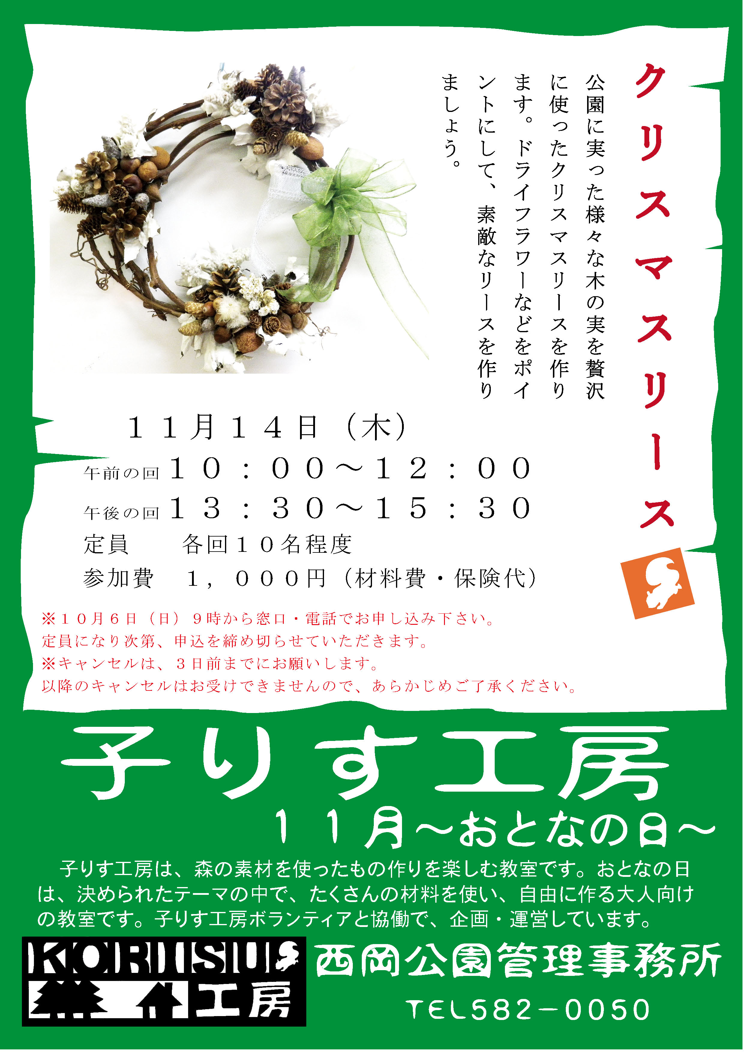11月14日(木)、子りす工房~おとなの日では、今年もクリスマスリース作りを行います。 ヤマブドウのツルに木の実を飾って、ステキなリースを作りませんか?