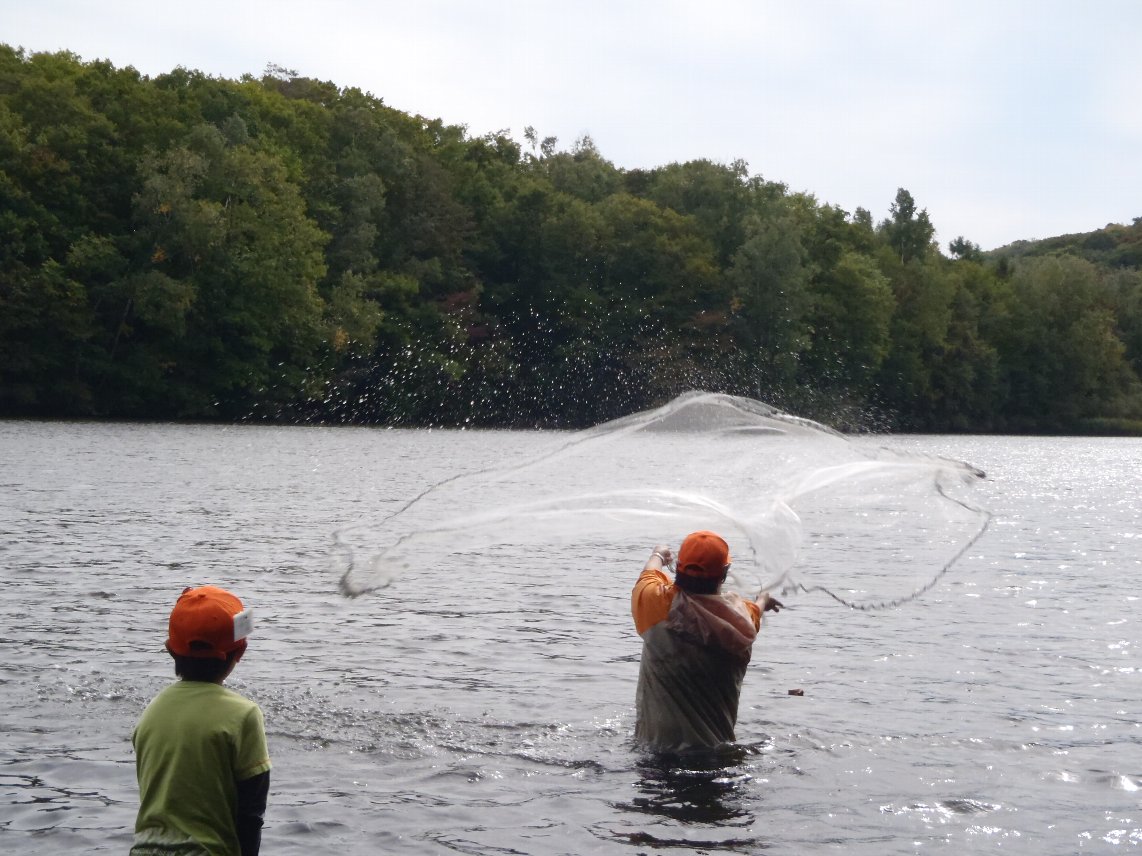 ↑より水源地の中心に近づいての投網。綺麗に広がる網に隊員は「おぉ~!!」との声を上げていました。
