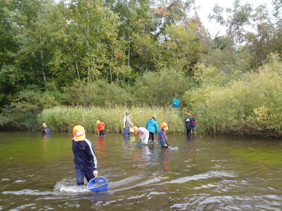 10月5日のにしおか魚組では、先日こちらのホームページでお知らせしました「西岡水源池の魚類調査」を行いました。今回は「どう」「投網」といった、通常では使用の禁止されている特別な漁具を使用するため、札幌市に使用許可申請を出し、許可を得た上での調査でした。魚組の隊員達にとってもめったにない貴重な体験となりました。