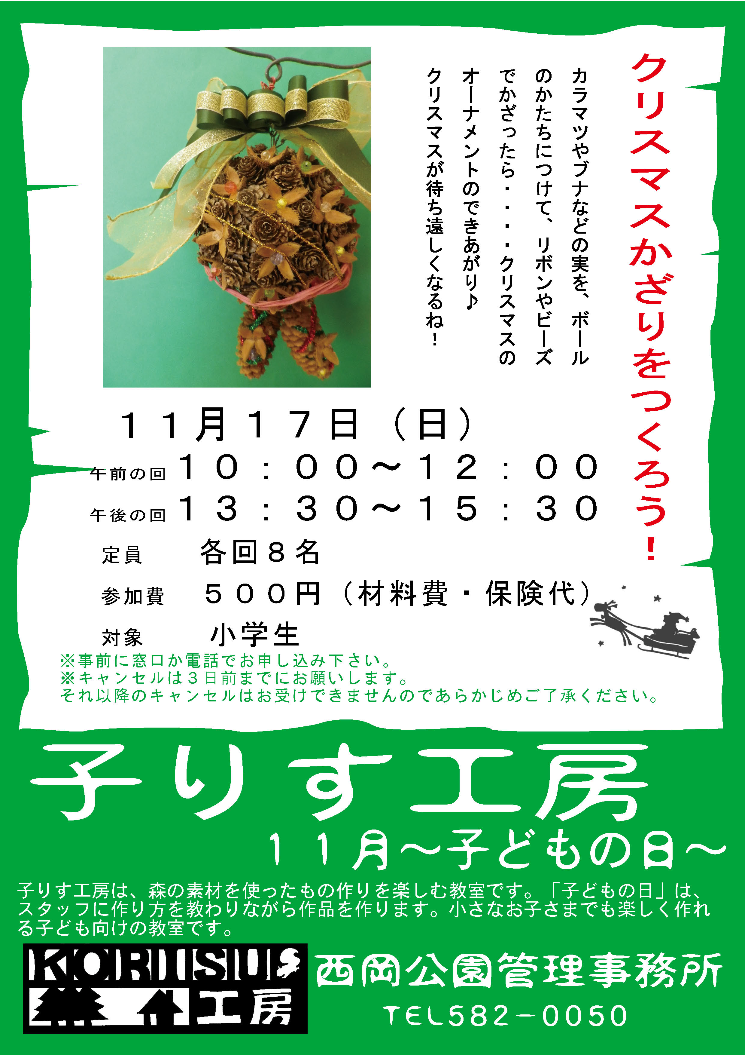 子りす工房~こどもの日「クリスマスかざりを作ろう!」のお知らせ