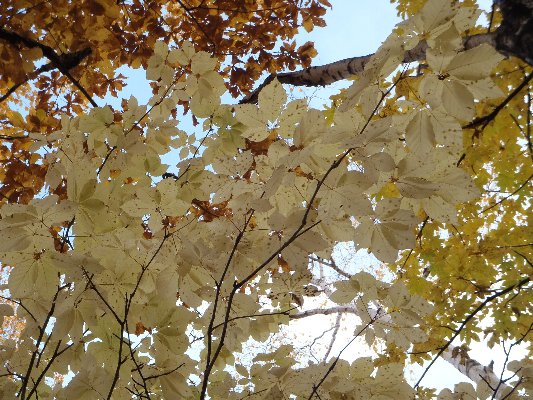 葉の色も樹種によって様々で、写真の「コシアブラ」のように、