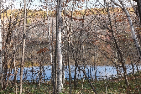 林の向こうに池の水面も見えるようになりました。