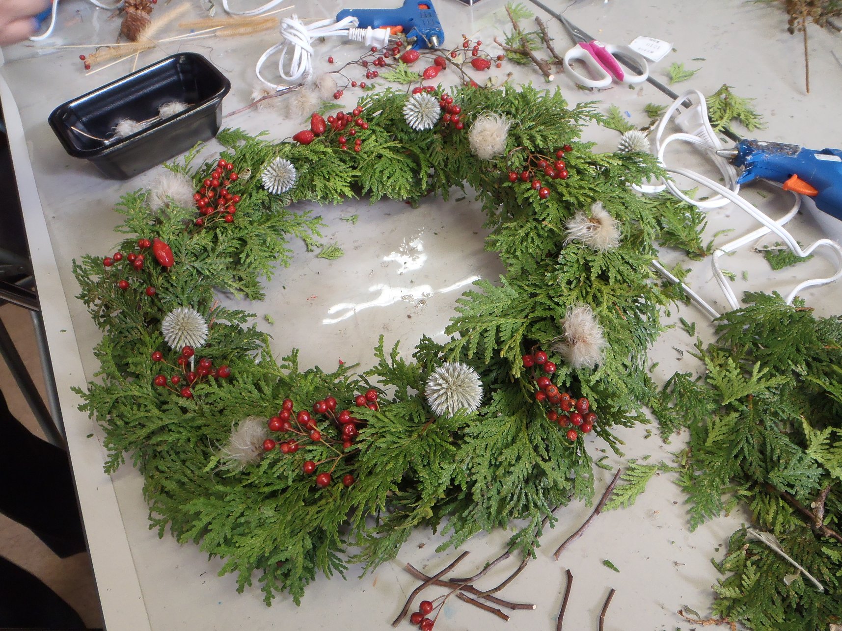 今日は子りす工房~おとなの日で、毎年恒例のクリスマスリースを作りました。