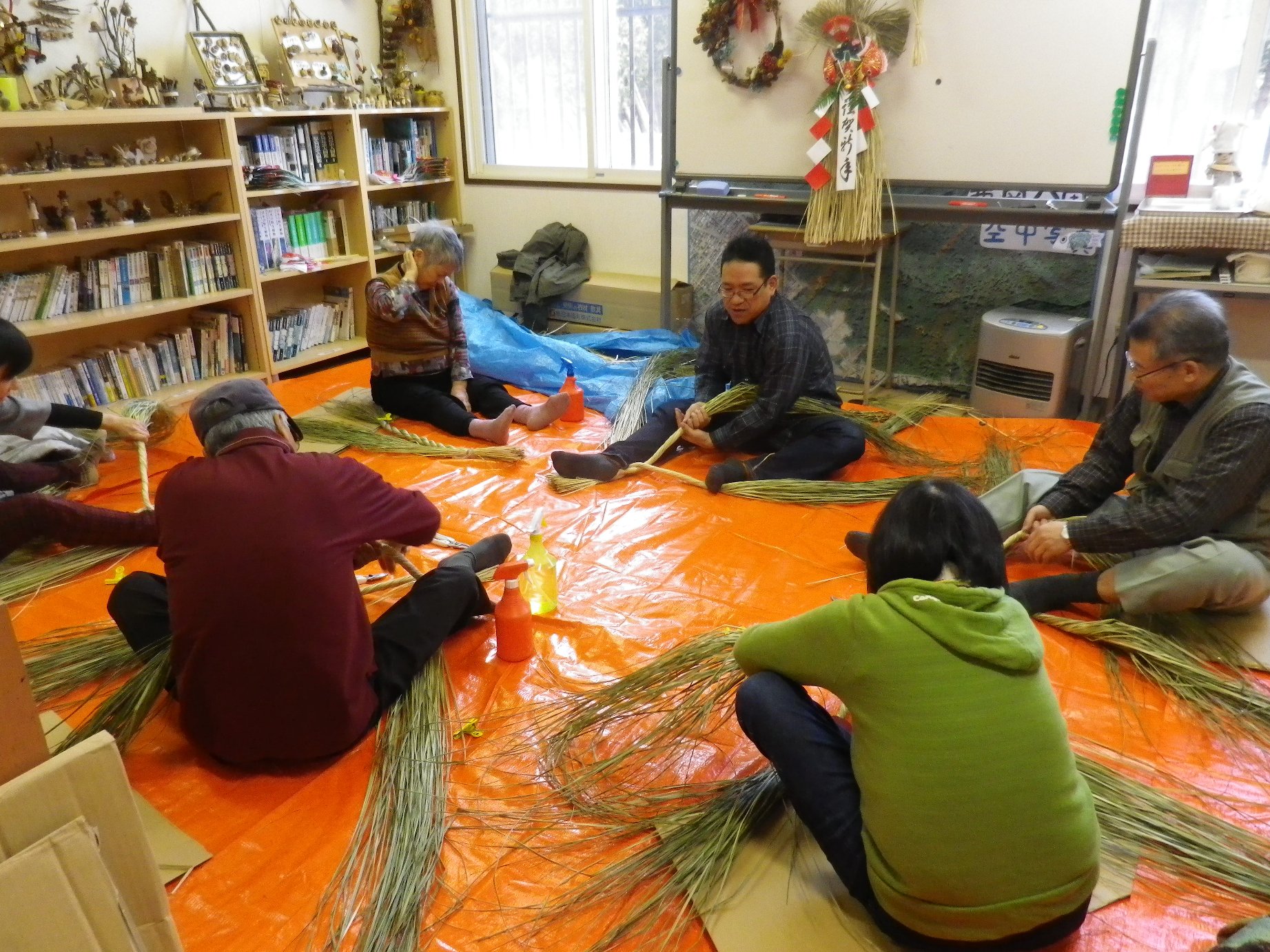 しめ縄作りは、毎年楽しみにしている人も多く、管理事務所の恒例行事になりつつあります。